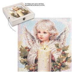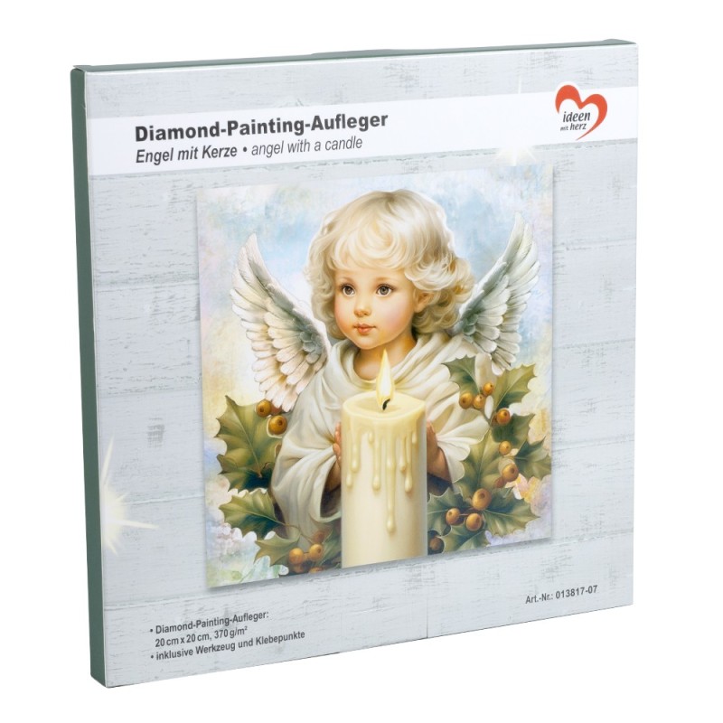 Aplikacja do malowania haftem diamentowym, Anioł ze świecą, 20 cm x 20 cm, 370 g/m², z narzędziami i samoprzylepnymi kamieniami.