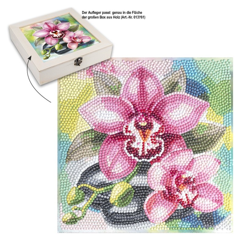 Aplikacja do malowania haftem diamentowym, Storczyk, 20 cm x 20 cm, 370 g/m², z narzędziami i samoprzylepnymi kamieniami.