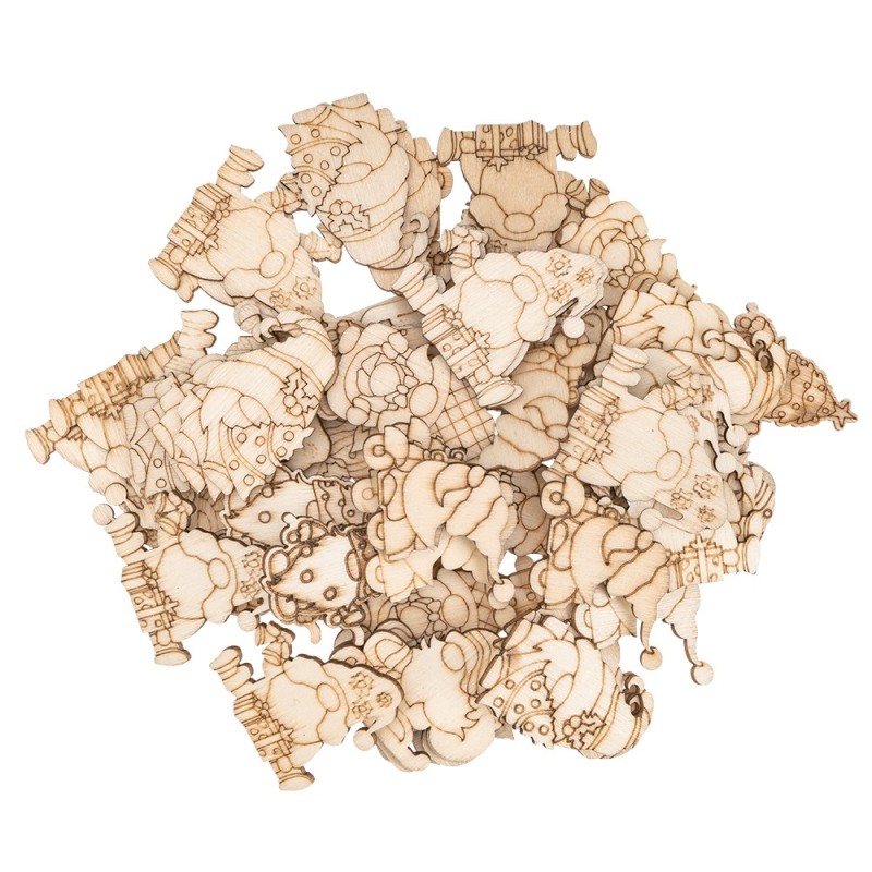 Dekoracyjne drewniane ozdoby dają wiele kreatywnych możliwości aranżacyjnych. Na przykład pomaluj je farbą akrylową, mgiełkamii lub różnymi lakierami. Po wyschnięciu możesz ozdobić czarujące ozdoby dowolnymi materiałami. Łącz ze sobą różne motywy według własnego uznania i umieszczaj je na kartkach okolicznościowych, wisiorkach, wizytówkach, opakowaniach prezentowych i wielu innych! Puść wodze fantazji!