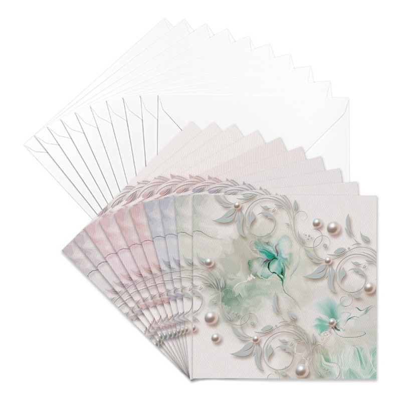 10 kartek okolicznościowych z motywami, kwiaty i perły, 16 cm x 16 cm, 230 g/m², 5 różnych kolorów, w tym koperty.