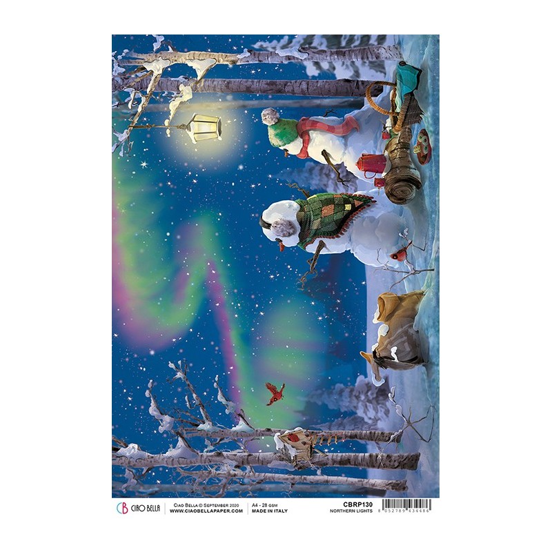 Ciao Bella papier ryżowy A4, zorza z bałwanami
