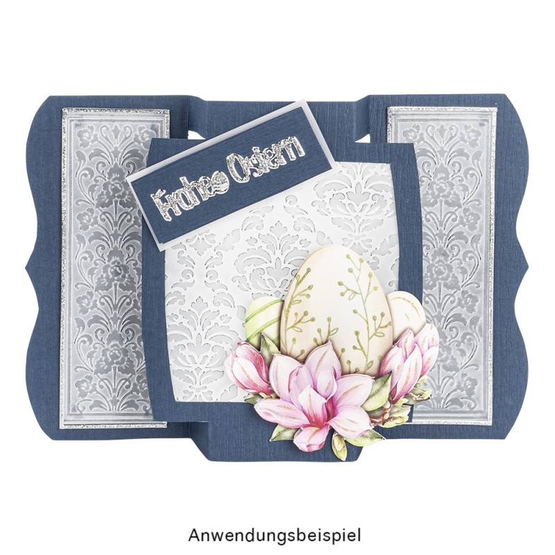 Umieść papier w szablonie do wytłaczania i umieść wszystko między plastikowymi płytkami, jak wskazano w instrukcji urządzenia. Teraz stos jest prowadzony przez maszynę zgodnie ze wskazaniami, a następnie usuwasz plastikowe płytki i możesz usunąć gotowy wytłaczony papier. Dzięki temu projektowanie indywidualnych kartek okolicznościowych, wizytówek i wielu innych elementów jest łatwe i bezpieczne.