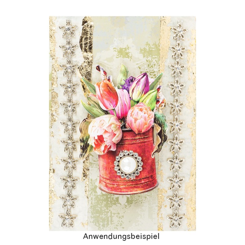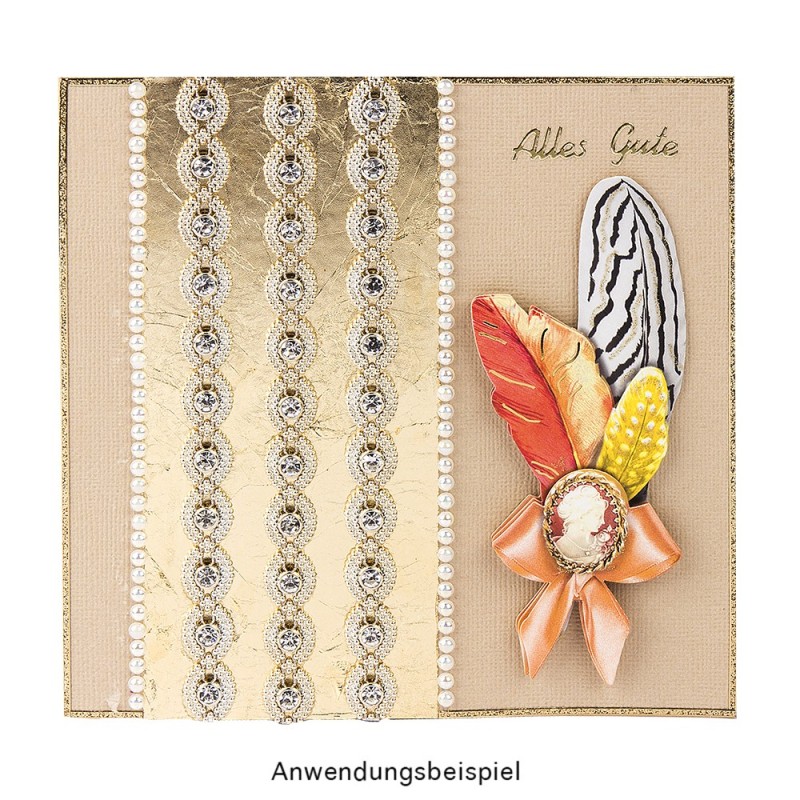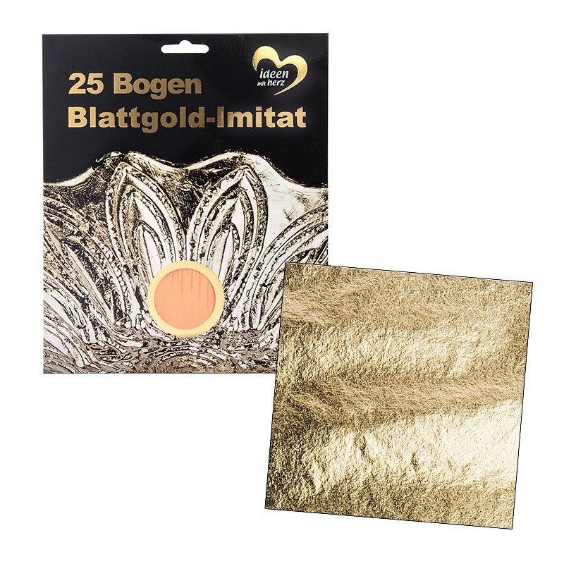 25 arkuszy imitacji płatków złota, każdy o wymiarach ok. 15 cm x 15 cm.