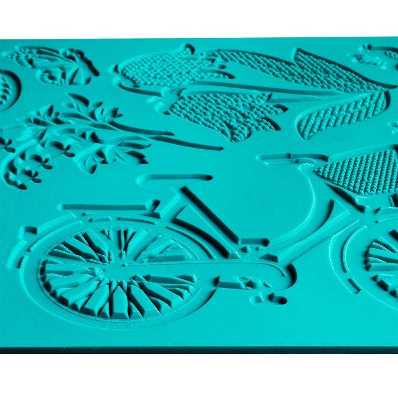 Wysokiej jakości bezpieczna dla żywności silikonowa mata dekoracyjna, Wzór 34 (wiosenny kosz, motyl, żonkile, rower, ptaki),