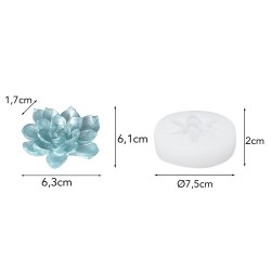 Praktyczna silikonowa forma do wykonania kwiatka o wymiarach 6,1 cm x 6,3 cm x 1,7 cm.