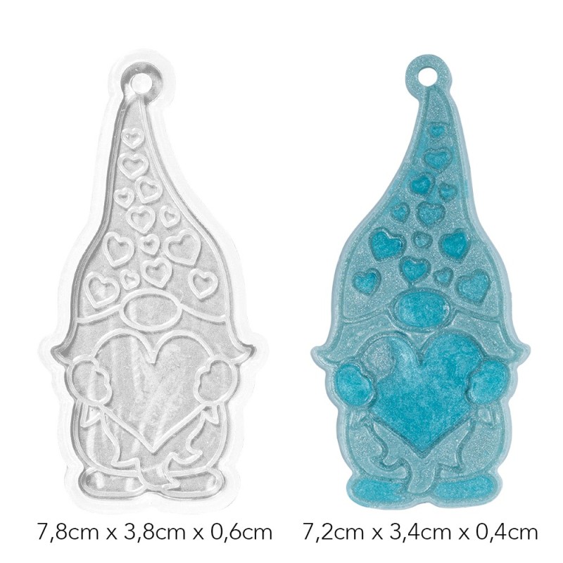 Silikonowa foremka "Skrzat" jest idealna do wykonania pięknych wisiorków z żywicy w kształcie krasnali. Wykonana jest z wysokiej jakości silikonu, jest niezwykle elastyczna i łatwa w użyciu. Odporna na ciepło, nadaje się do temperatur od -40°C do 230°C. Forma silikonowa jest przeznaczona do kontaktu z żywnością. Możesz bezpiecznie używać jej do robienia mrożonych smakołyków, takich jak kostki lodu, foremki na czekoladki, a nawet mini ciastka. Możesz również użyć formy w połączeniu z żywicą epoksydową, betonem, pastą efekt kamienia i wieloma innymi. Niezależnie od tego, czy do własnej dekoracji świątecznej, jako zawieszka do prezentu, czy jako prezent dla gości, kreacje z tą silikonową foremką z pewnością przyciągną wzrok. Dzięki silikonowej formie „Skrzat” możesz uwolnić swoją kreatywność.