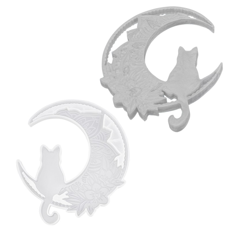 Silikonowa forma w kształcie kota siedzącego na księżycu to wyjątkowy wybór dla miłośników magii, nocnego nieba i kocich motywów. Jej duży rozmiar sprawia, że świetnie nadaje się do tworzenia ozdób ściennych, zawieszek, podkładek czy elementów dekoracyjnych.