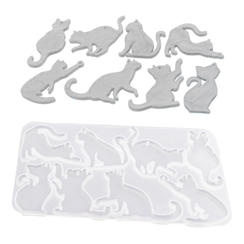 Forma silikonowa – koty 1, 8 wzorów, bezpieczna dla żywności, do żywicy, gliny i modeliny