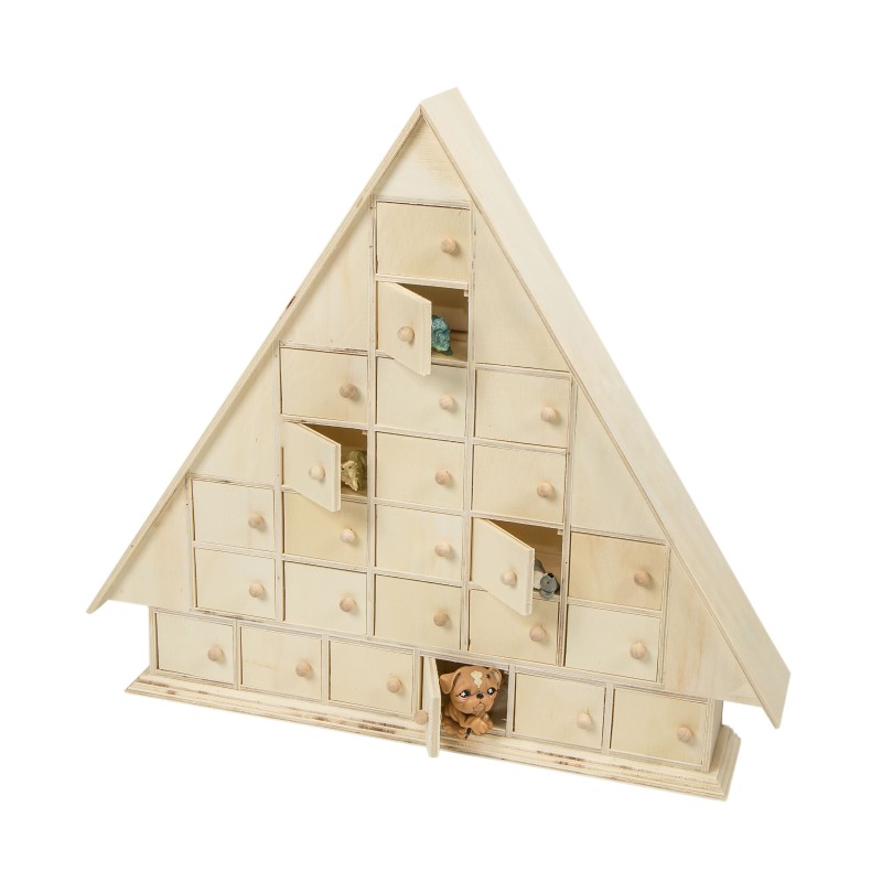 Kalendarz adwentowy drewniany domek 42,5x48x8cm