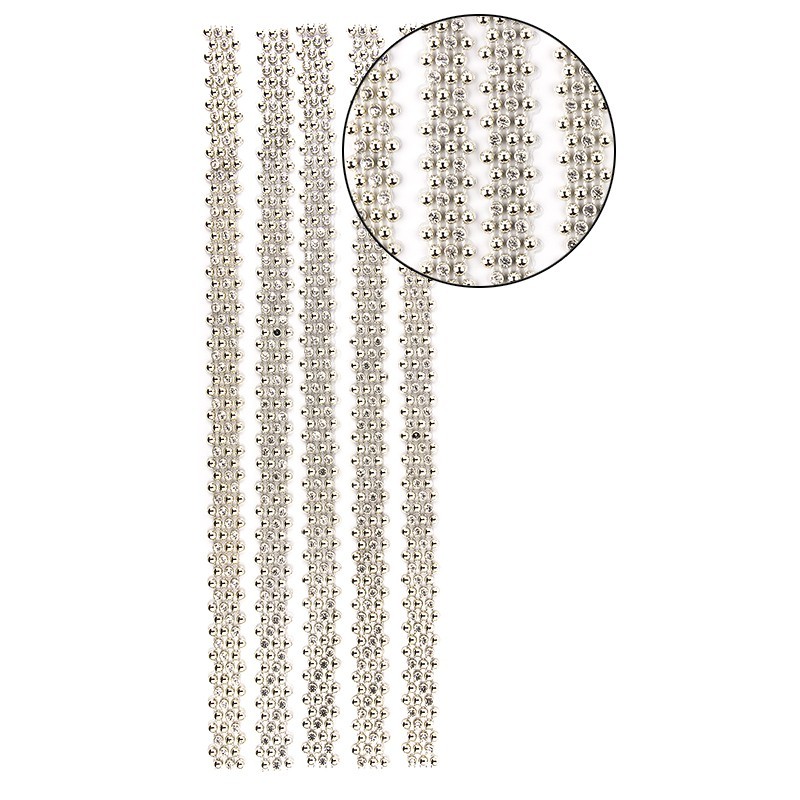Każda bordiura ma ok. 29 cm długości i ok. 1,5 cm szerokości i składa się z półpereł i kamieni szlachetnych ze szklanymi kryształkami.