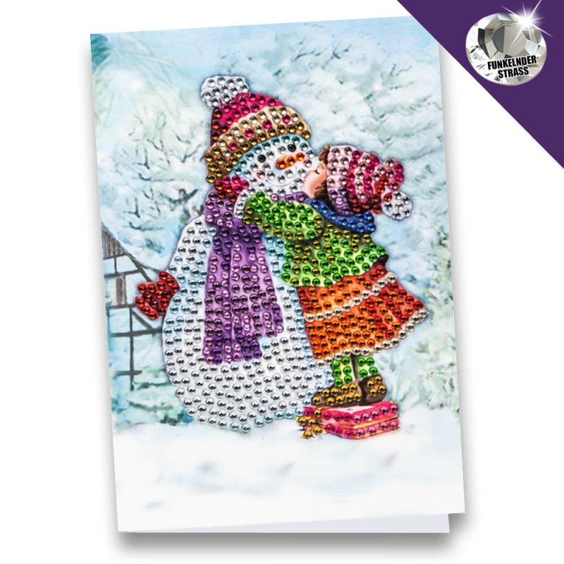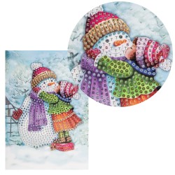 Kartka okolicznościowa z diamentowym malowaniem – Bałwan z dziewczynką (B6, 11,5 x 16,5 cm, 370 g/m²)
