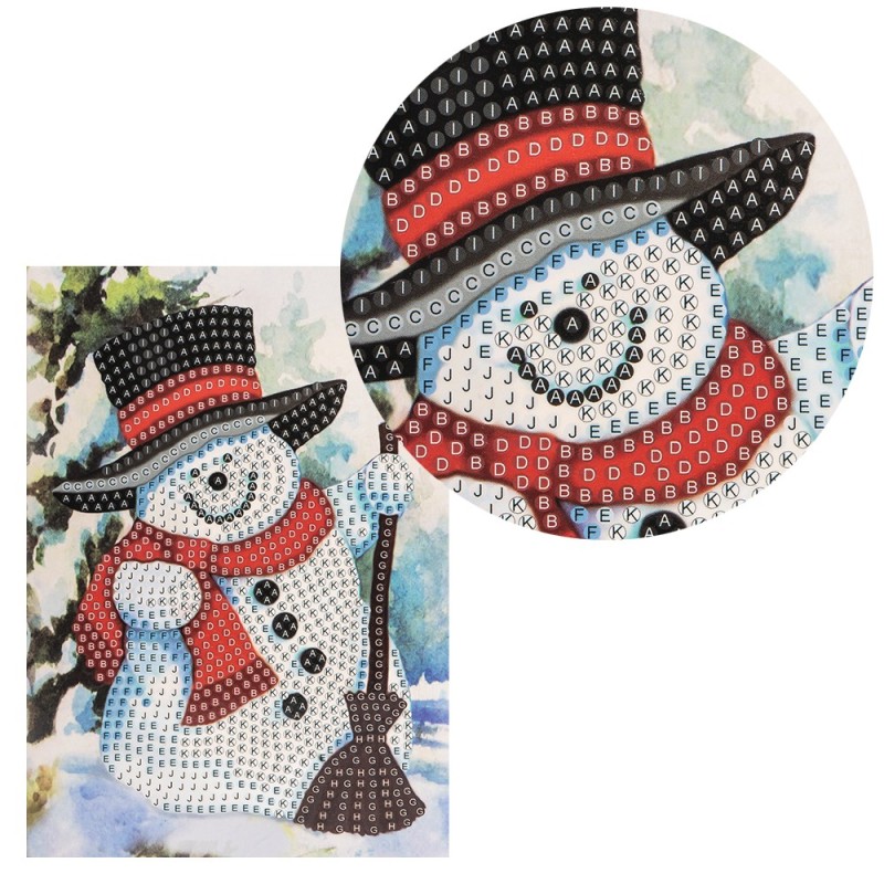 Diamond painting - kartka z bałwanem, rozm. 11,5x16,5 cm, cyrkonie