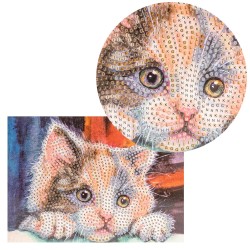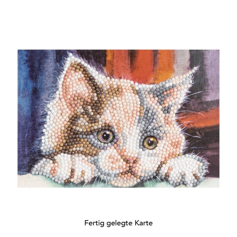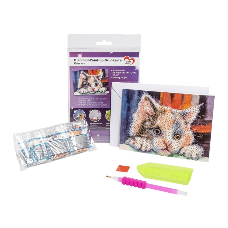 Kartka okolicznościowa z diamentowym malowaniem, Kotek 16,5 x 11,5 cm 370g / m², w tym koperta i narzędzia
