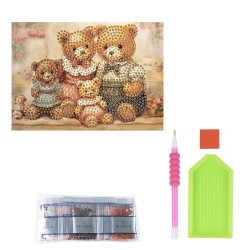 Kartka okolicznościowa z diamentowym malowaniem, Misie, 11,5cm x 16,5cm, 370g / m², w tym koperta i narzędzia