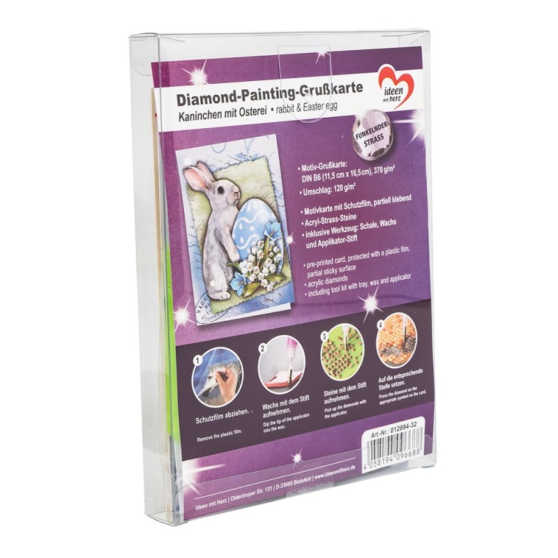 Kartka okolicznościowa z diamentowym malowaniem – Zając (B6, 11,5 x 16,5 cm, 370 g/m²)