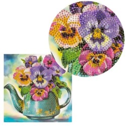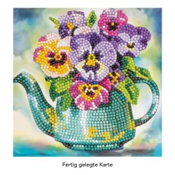 Diamond painting, kartka czajniczek z bratkami, rozm. 16x16cm