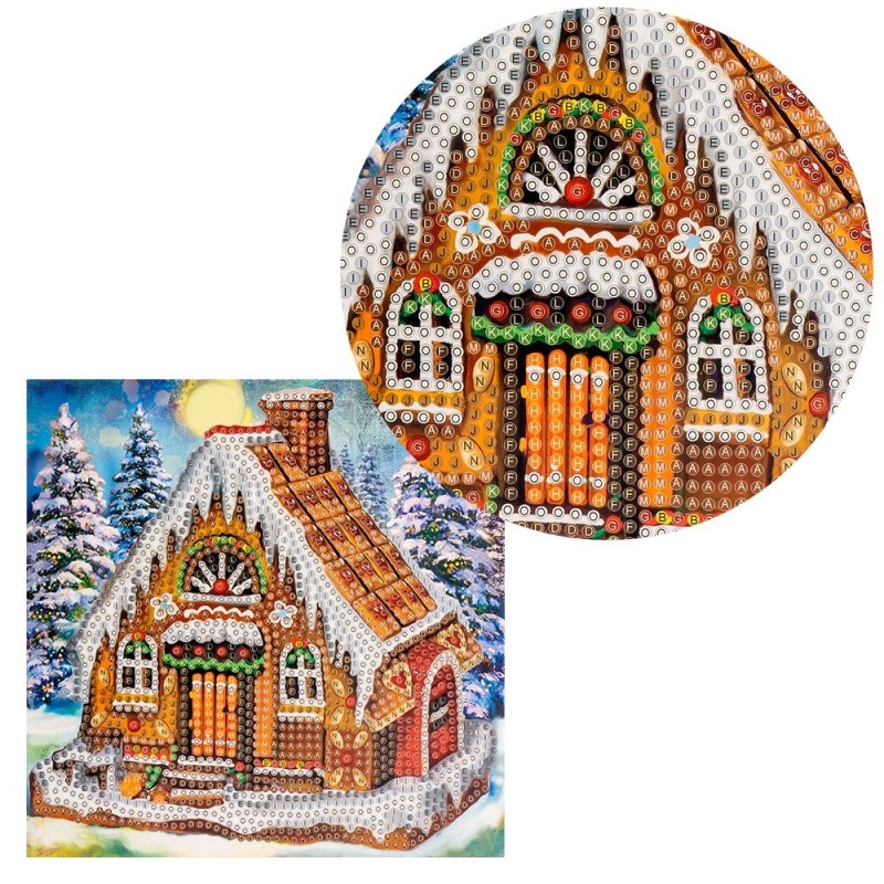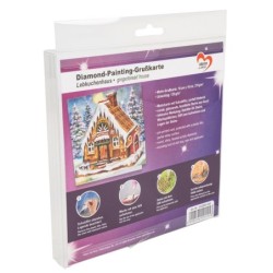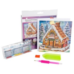 Kartka okolicznościowa z diamentowym malowaniem, Dom z piernika, 16cm x 16cm, 370g / m², w tym koperta i narzędzia