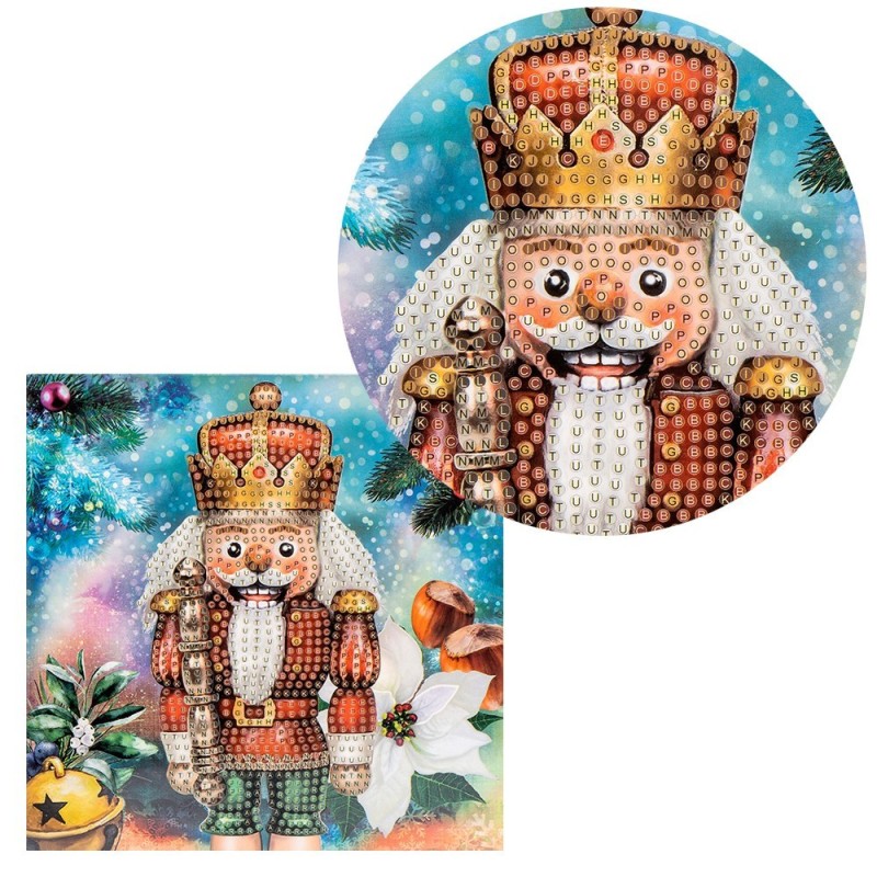 Kartka okolicznościowa z diamentowym malowaniem, DZIADEK DO ORZECHÓW rozm. 16 cm x 16cm, 370g / m², w tym koperta i narzędzia