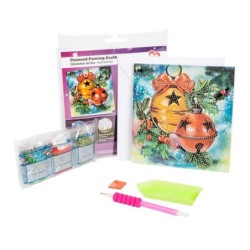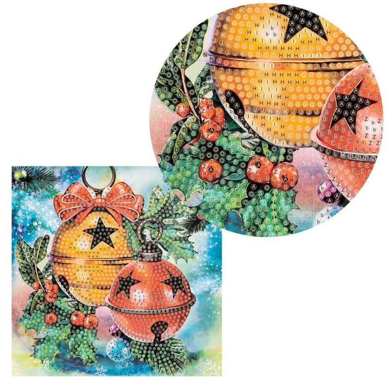 Kartka okolicznościowa z diamentowym malowaniem, DZWONKI ŚWIĄTECZNE, 16cm x 16cm, 370g / m², w tym koperta i narzędzia