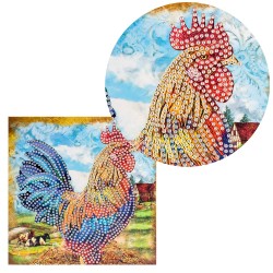 Diamond painting, kartka Kogut, rozm. 16x16 cm
