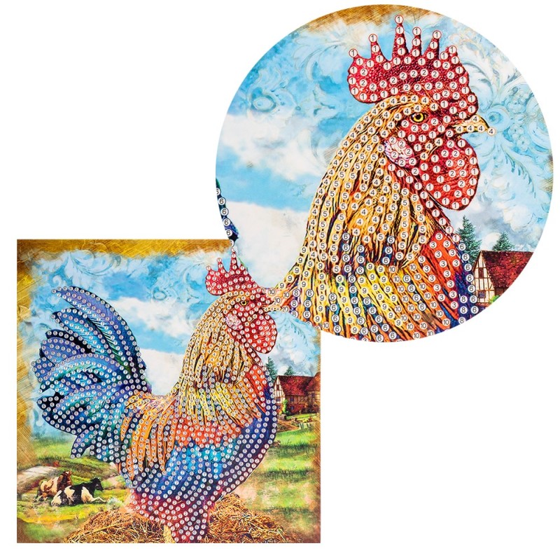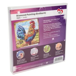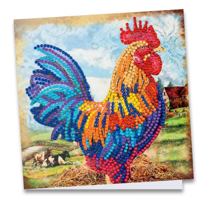 Kartka okolicznościowa z diamentowym malowaniem, Kogut 16cm x 16cm, 370g / m², w tym koperta i narzędzia
