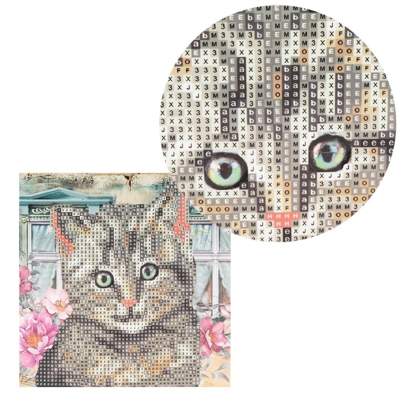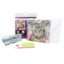 Kartka okolicznościowa z diamentowym malowaniem, Kot16cm x 16cm, 370g / m², w tym koperta i narzędzia