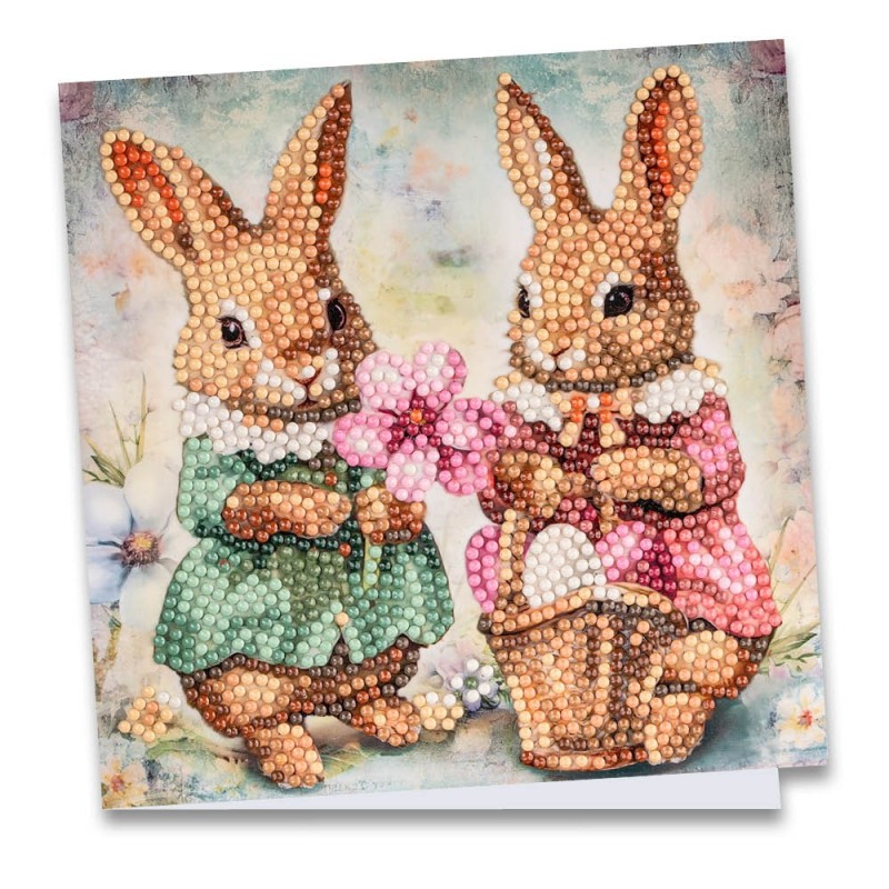 Kartka do malowana haftem diamentowym, Króliczki rozm. 16 cm x 16 cm