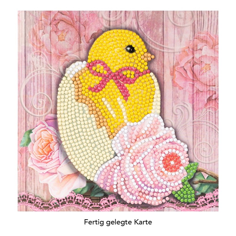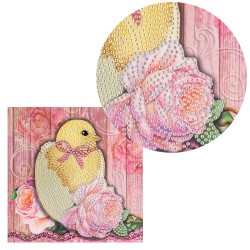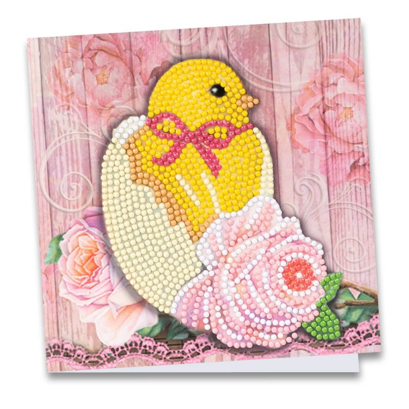 Kartka okolicznościowa z diamentowym malowaniem, Kurczak w skorupce rozm. 16 cm x 16cm, 370g / m², w tym koperta i narzędzia
