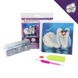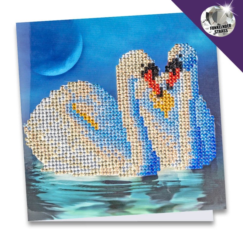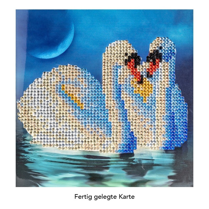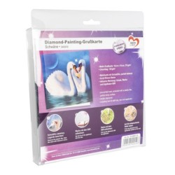 Kartka okolicznościowa z diamentowym malowaniem, łabędzie 16cm x 16cm, 370g / m², w tym koperta i narzędzia