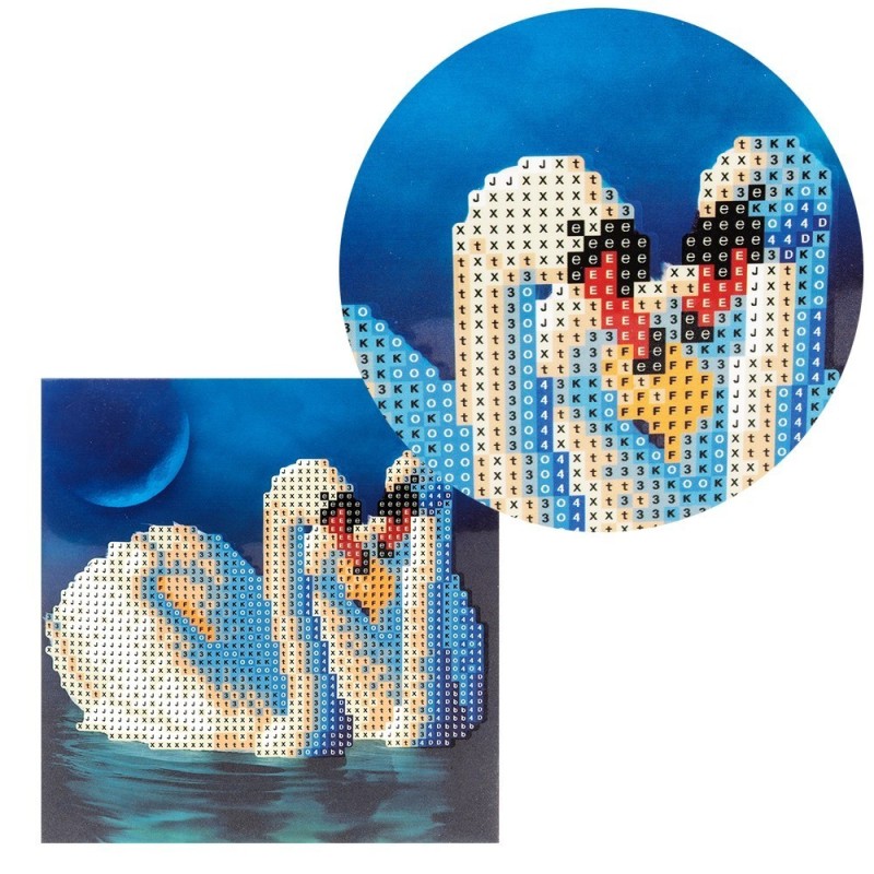 Diamond painting, kartka, Łabędzie, cyrkonie, rozm. 16x16 cm