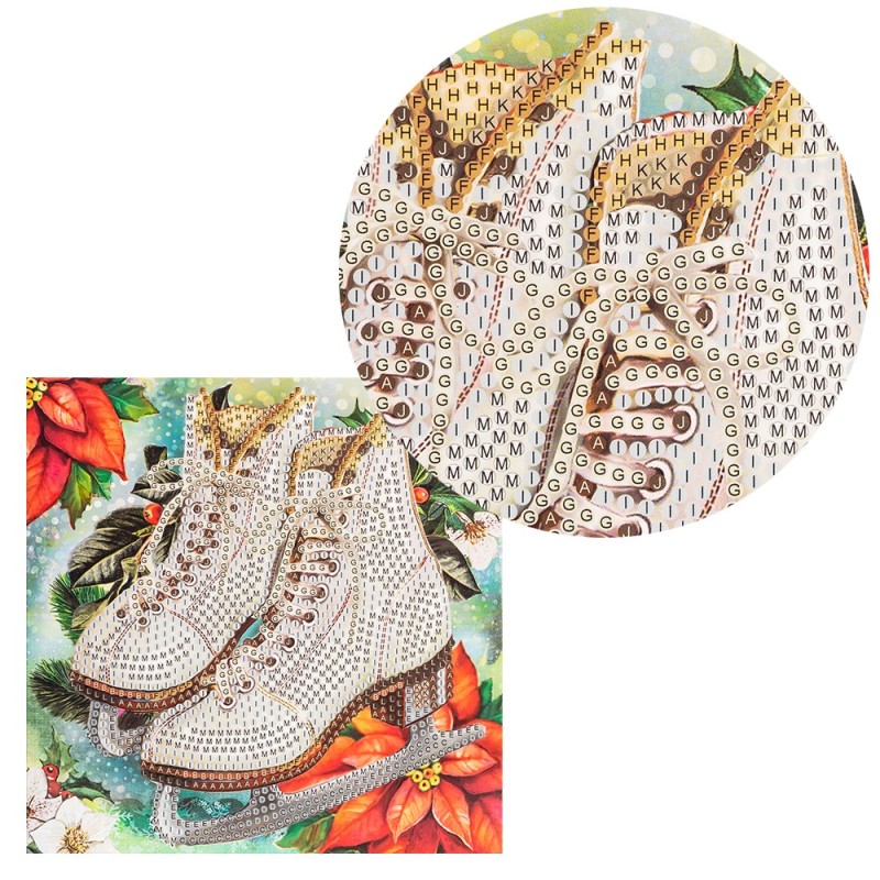 Diamond painting - kartka Łyżwy, cyrkonie, rozm. 16x16 cm, z narzędziami
