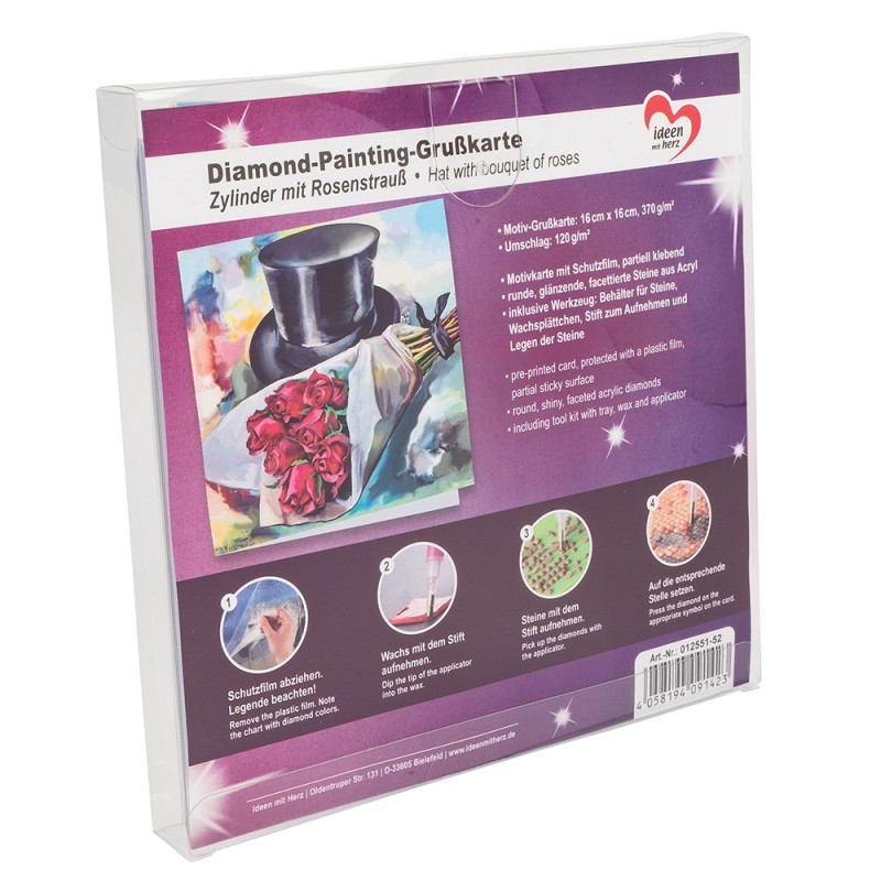 Kartka okolicznościowa z diamentowym malowaniem, Specjalne okazje, 16cm x 16cm, 370g / m², w tym koperta i narzędzia