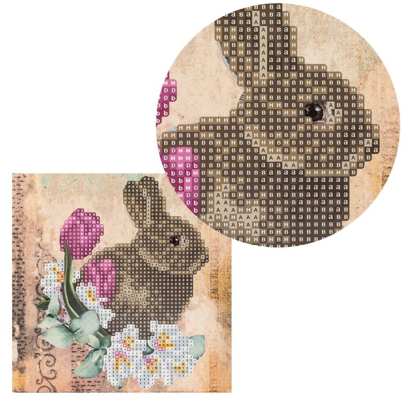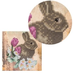 Diamond painting, kartka okolicznościowa, Zając z kwiatami 2, 16x16 cm