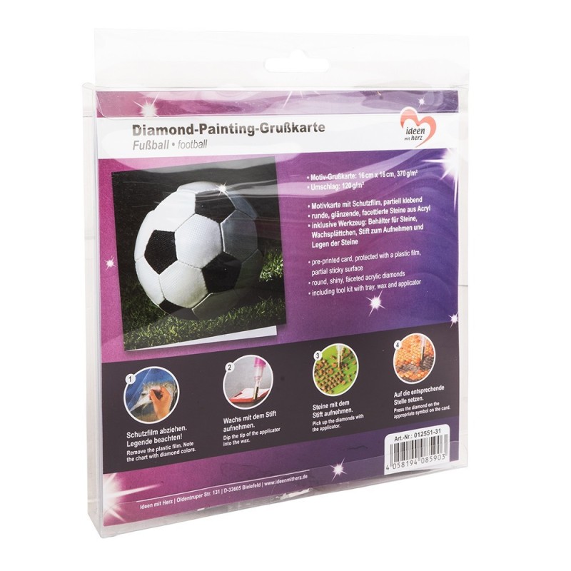 Kartka okolicznościowa z diamentowym malowaniem, piłka 16cm x 16cm, 370g / m², w tym koperta i narzędzia