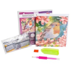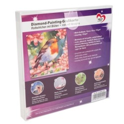 Kartka okolicznościowa z diamentowym malowaniem, Rudzik 16cm x 16cm, 370g / m², w tym koperta i narzędzia