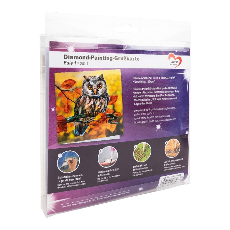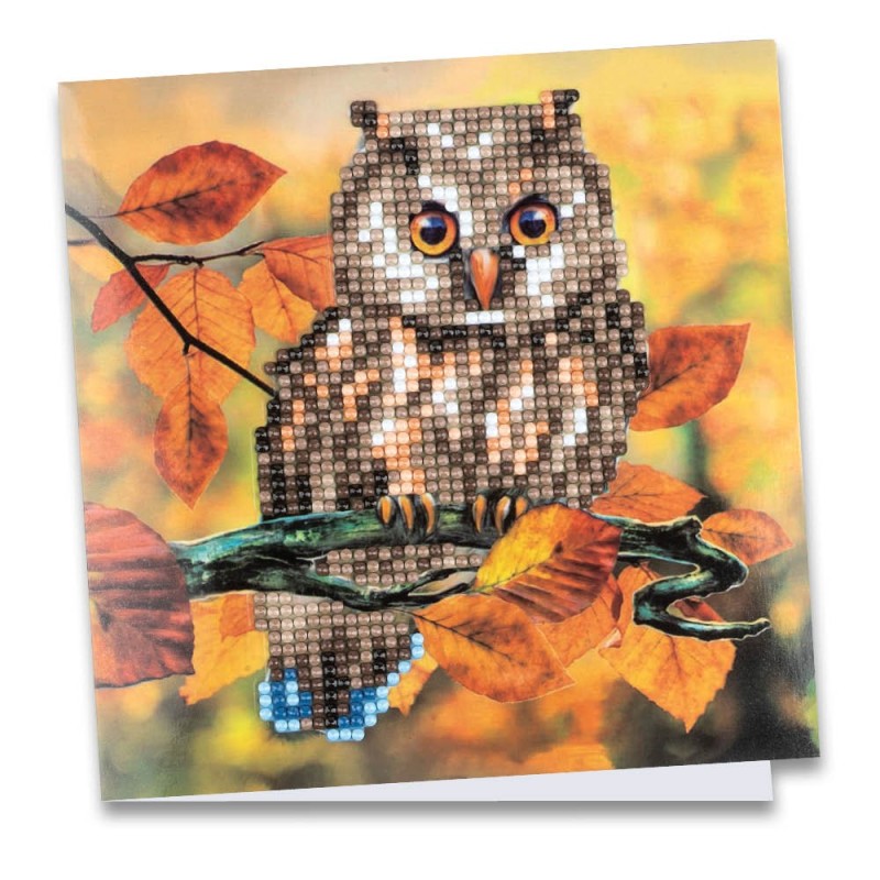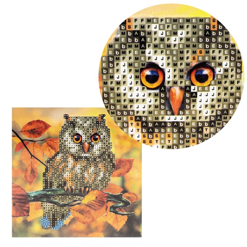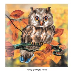 Kartka okolicznościowa z diamentowym malowaniem, Sowa rozm. 16 cm x 16cm, 370g / m², w tym koperta i narzędzia