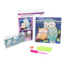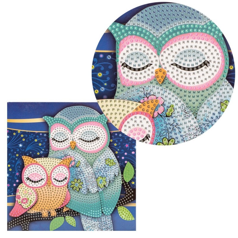 Kartka okolicznościowa z diamentowym malowaniem, Sowy 16cm x 16cm, 370g / m², w tym koperta i narzędzia