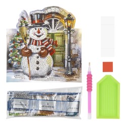 Kartka do haftu diamentowego Bałwan z latarnią 16,3 cm x 16 cm, zawiera kopertę i narzędzia.