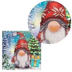 Diamond painting, kartka świąteczna z Krasnalem, rozm. 16 x16 cm