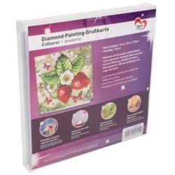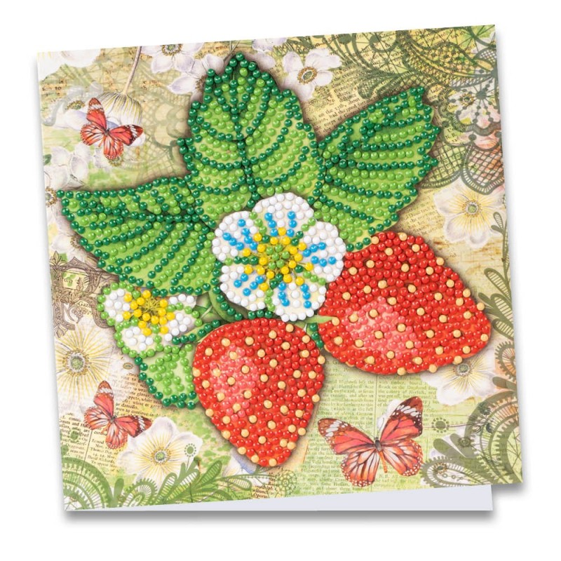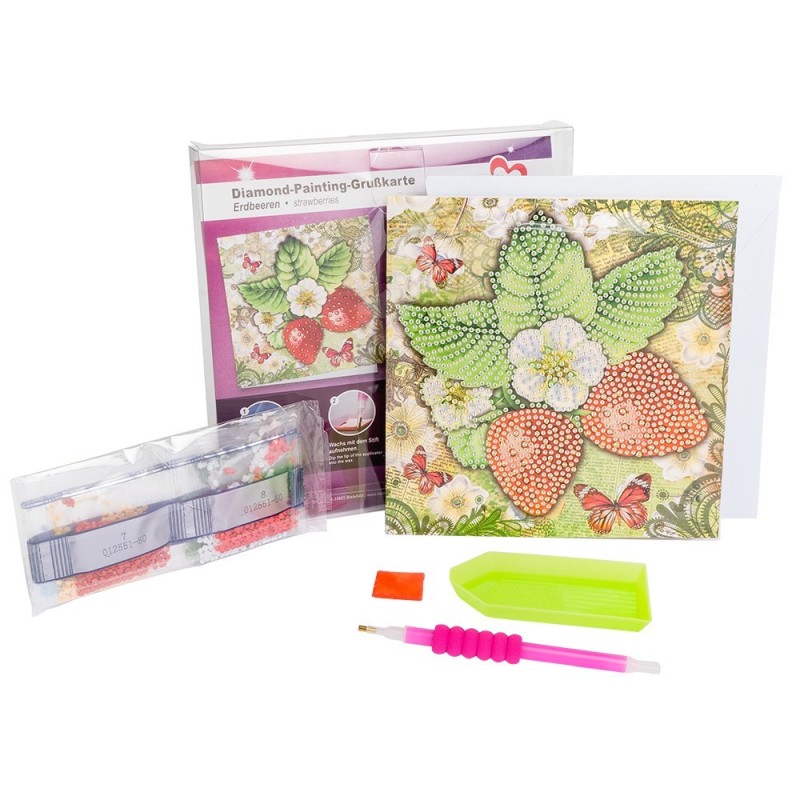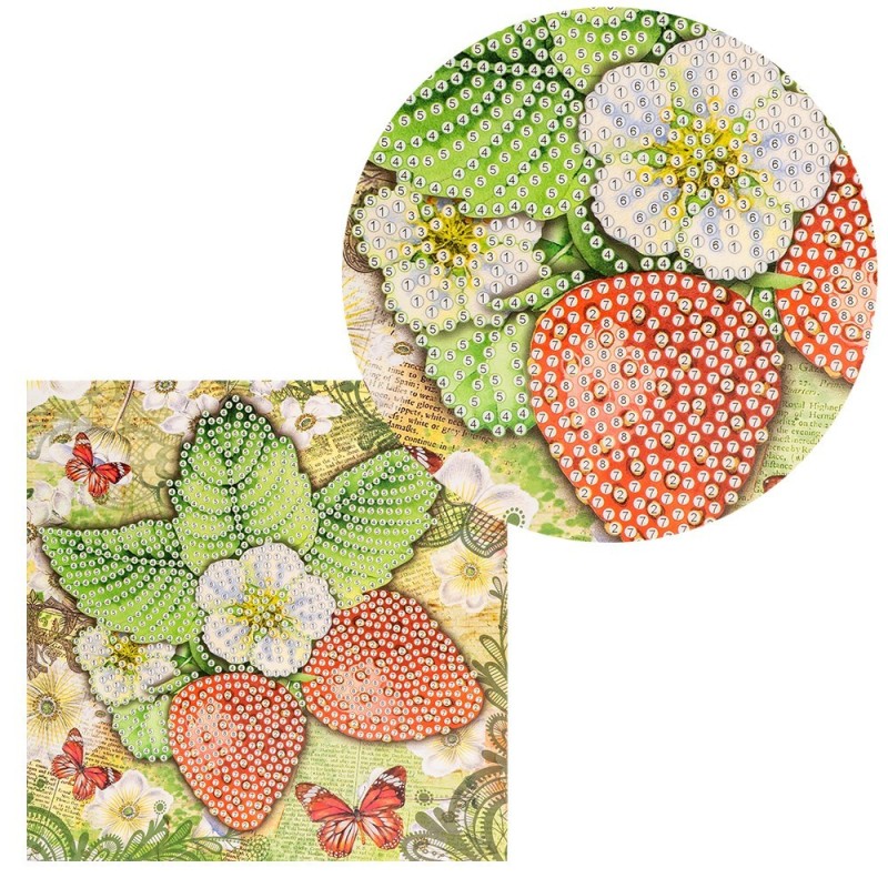 Kartka okolicznościowa z diamentowym malowaniem, Truskawki 16cm x 16cm, 370g / m², w tym koperta i narzędzia