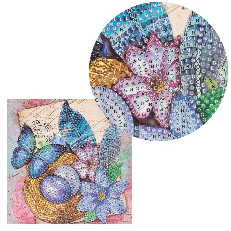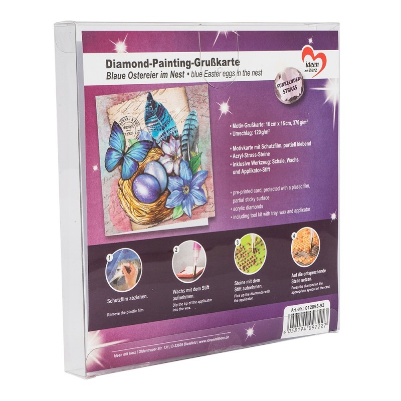 Diamentowa kartka – jajka z piórkiami 16 × 16 cm, 370 g/m², w zestawie koperta i narzędzia