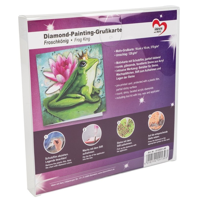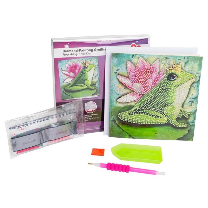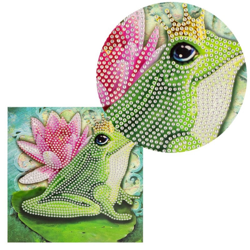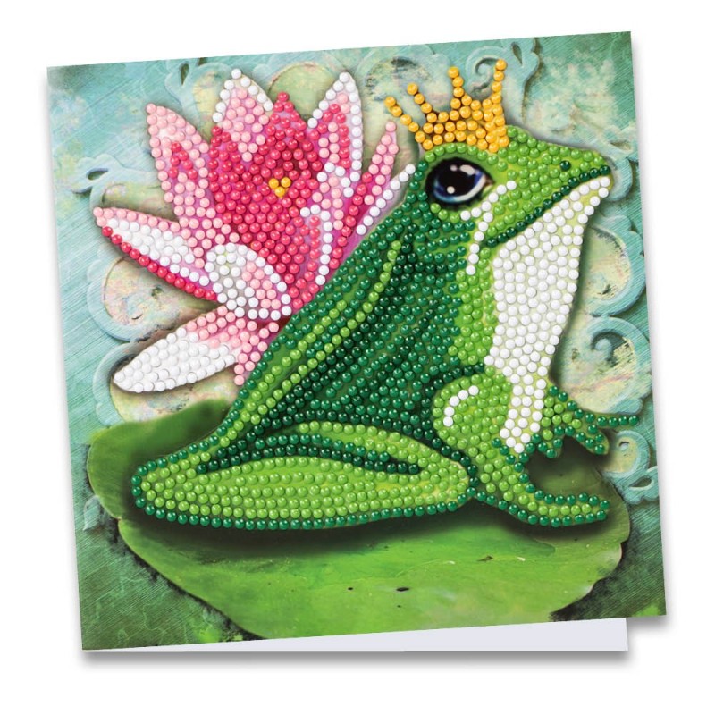 Kartka okolicznościowa z diamentowym malowaniem, Żabka 16cm x 16cm, 370g / m², w tym koperta i narzędzia
