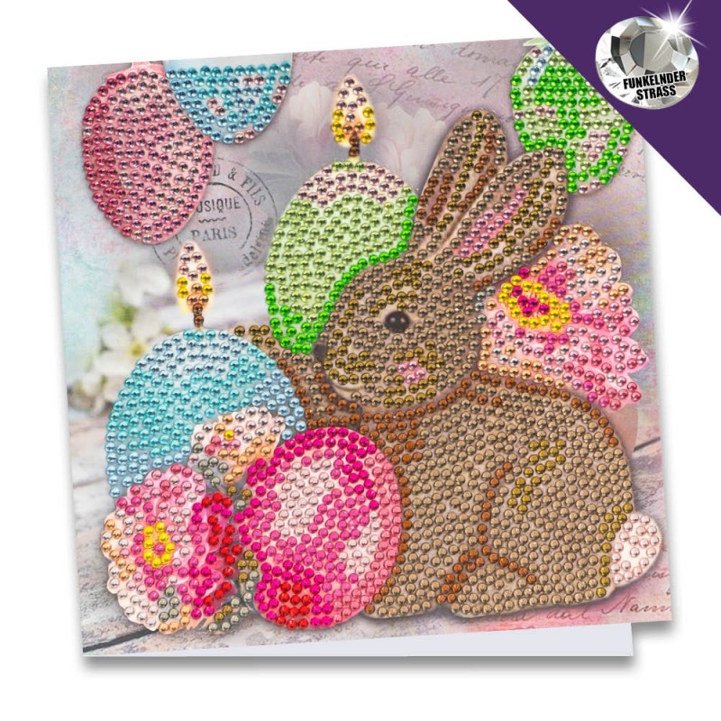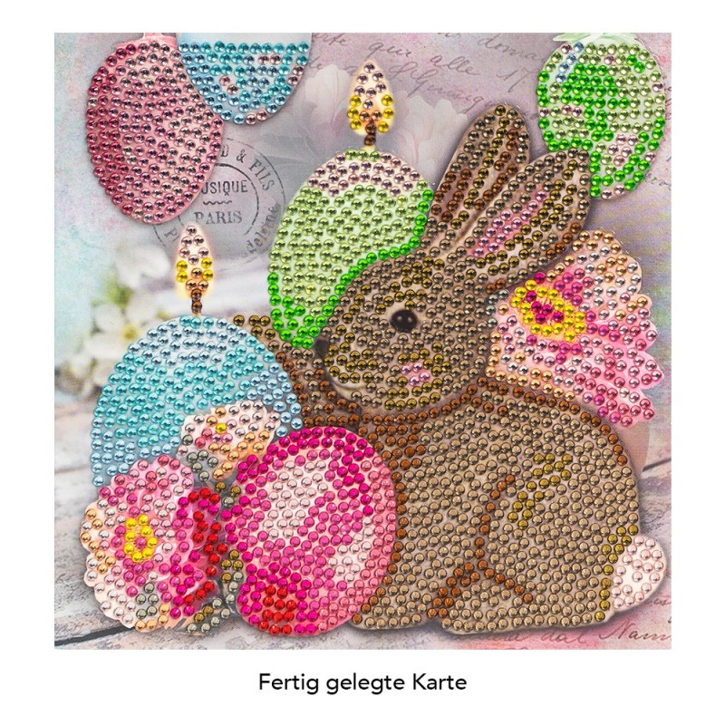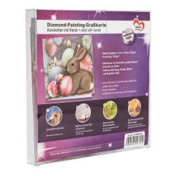 Kartka okolicznościowa z diamentowym malowaniem, Zajaczek 16cm x 16cm, 370g / m², w tym koperta i narzędzia