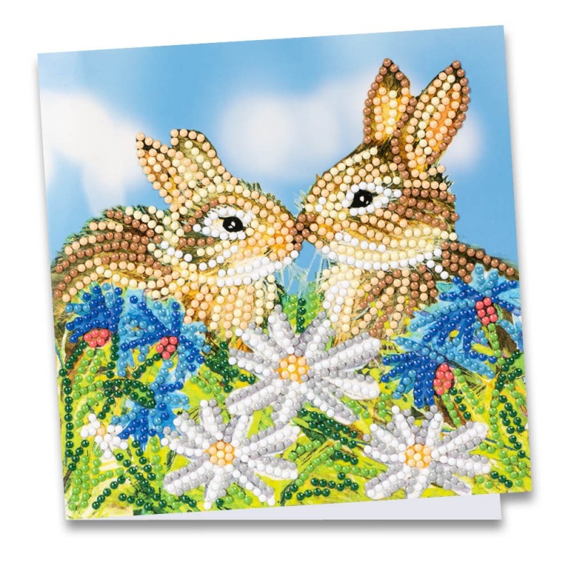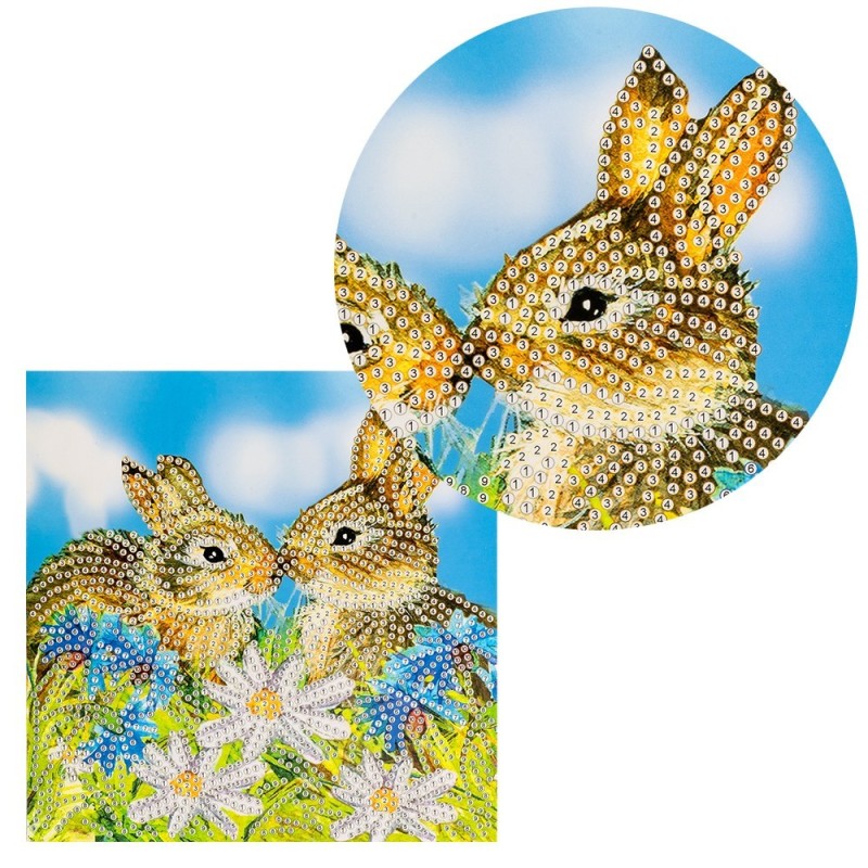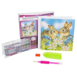 Kartka okolicznościowa z diamentowym malowaniem, zajączki 16cm x 16cm, 370g / m², w tym koperta i narzędzia