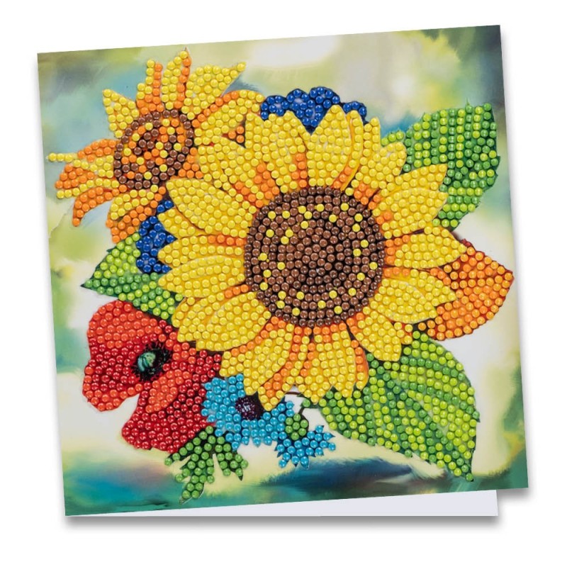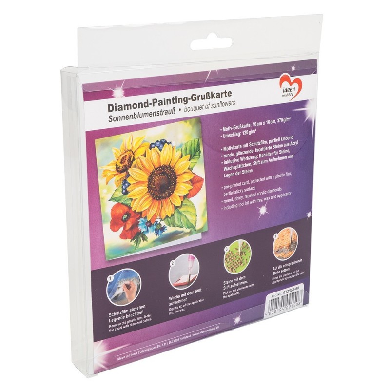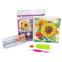 Kartka okolicznościowa z diamentowym malowaniem, słoneczniki, 16cm x 16cm, 370g / m², w tym koperta i narzędzia