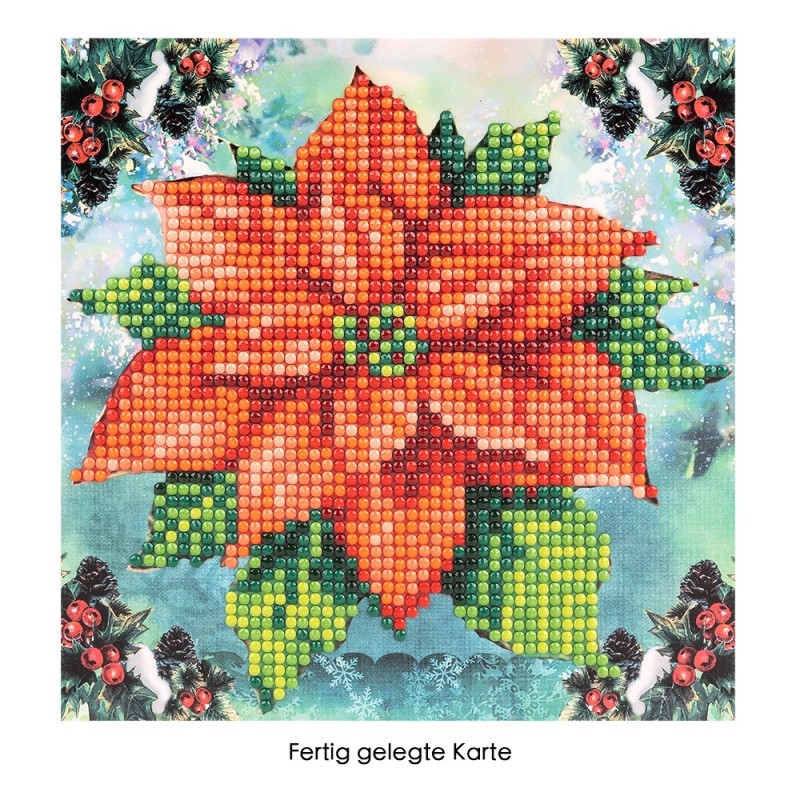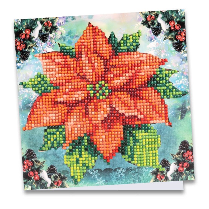 Kartka okolicznościowa z diamentowym malowaniem – Poinsecja (16 x 16 cm, 370 g/m²)