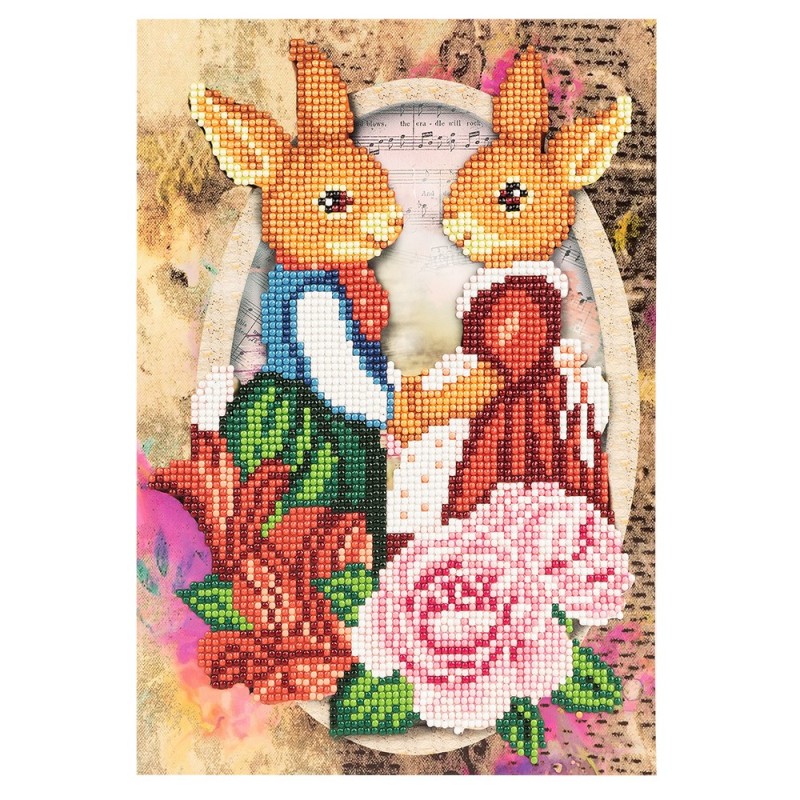 Kartka okolicznościowa z diamentowym malowaniem – Zajączki (A4, 370 g/m²)