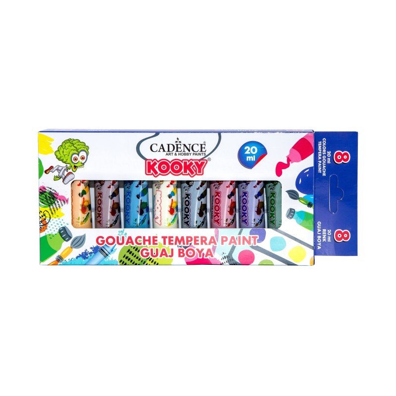Zestaw 8 farb gwasz KOOKY po 20 ml – idealny do ilustracji, DIY i projektów dziecięcych. Intensywne kolory, świetne krycie, bezpieczne dla dzieci.
