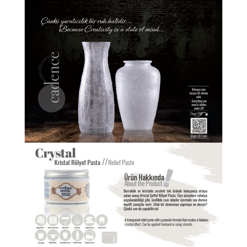 Pasta kryształowa Cadence Crystal Relief to wyjątkowa przezroczysta pasta strukturalna o granulowanej formule, która pozwala uzyskać efekt połyskującego lodu i drobinek kryształu. Idealna do prac w technikach decoupage, mixed media, scrapbookingu i DIY.