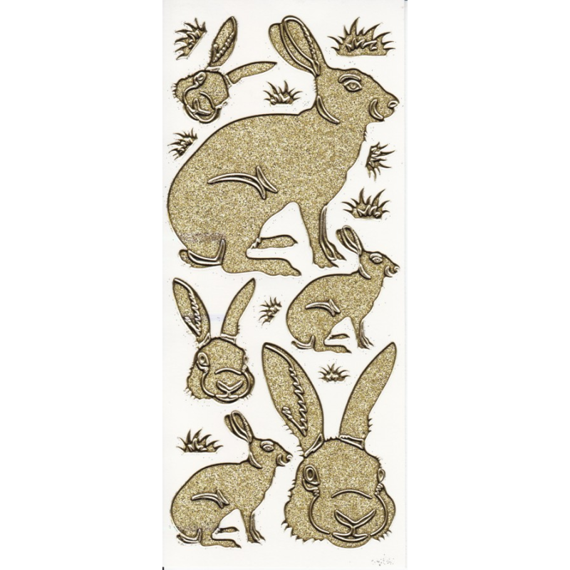 Naklejka złota brokatowa 10x23 cm micro sticker, zajączek
